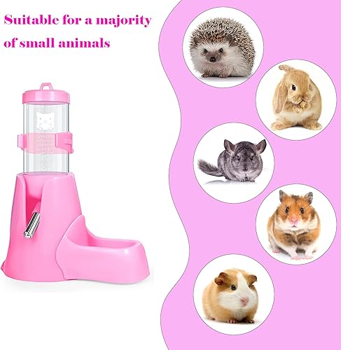 Pink Hamster Water Bottle with Stand Water Bottle with Food Container Base Automatic Bottle Dispenser for Dwarf Hamster Gerbil Small Animals