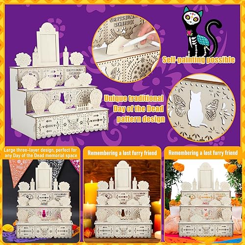 DIY Customization: this three-tier ofrenda kit is designed for DIY personalization. It comes unpainted, making you to use various colors and patterns to create a special look that reflects your style while honoring your pet. Crafted from quality poplar plywood, its natural wood grain gives a rustic aesthetic. Please note that laser cutting may cause slight darkening on the back edges, you can paint over this or focus on decorating the front to achieve your desired special appearance