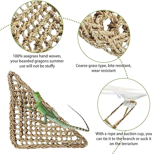 Safe and durable material: The bearded dragon hammock is made from natural seaweed. With leaves made of plastic and stems made of wire, this reptile plant can be reused, creating an interesting hiding place and climbing spot for the reptile