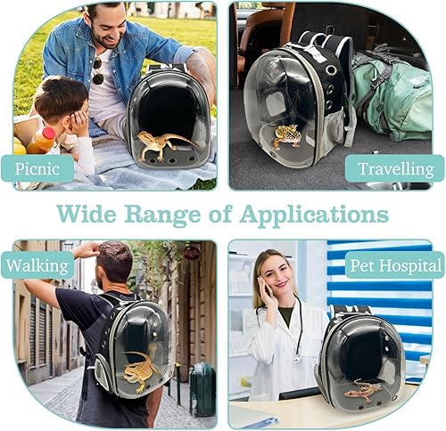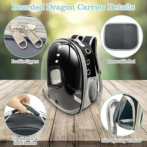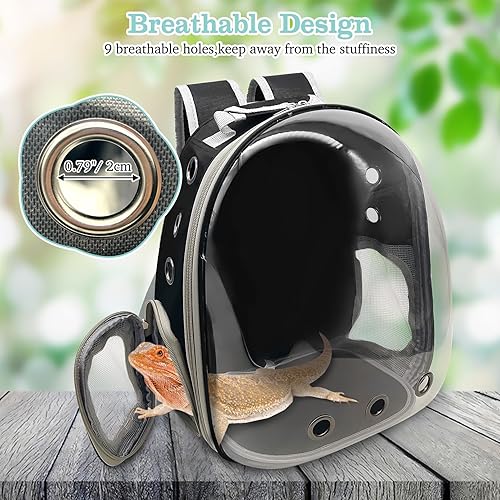 Transparent Bubble Window: The bearded dragon backpack features a transparent bubble window design, allowing you to observe your pet's movements while also enabling your pet to see the outside world, satisfying its curiosity and reducing anxiety. The front hard clear bubble window provides better protection for reptiles in case of accidents, avoiding them from being crushed or attacked