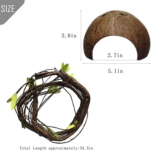 Coconut Shell:Natural coconut shell cave provides a feel safe hiding place for your reptilian making them having fun play. Crested geckos and leopard geckos can take the food from the hole when the hut be a food dispenser. Pets can release excessive or anxious energy to relieve stress