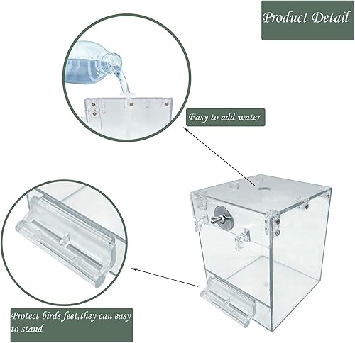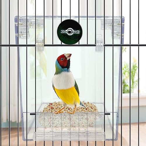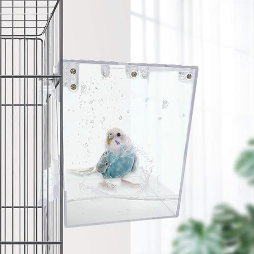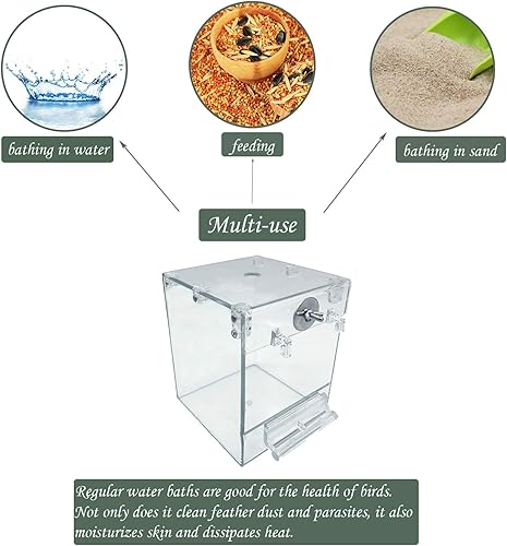 High Quality Material:Parrot bath box is made of thickened acrylic material, environmentally friendly and safe, light and strong, safe and non-toxic, long lasting. The purpose of using transparent materials is to observe the state of the bird at all time