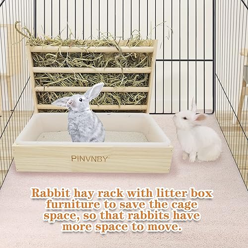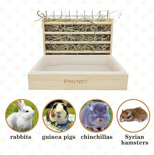 Quality materials: Rabbit hay feeder selection of natural wood, carefully polished, won't scratch, nails are embedded in the wood, also won't scratch pets, the perfect rabbit litter box and hay rack combination, one product, solve two things
