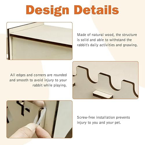 Nail-Free Installation: Our wooden rabbit castle is a nail-free design. It is crafted with delicate sanding and assembling for a stable structure. Ensure that there are no sharp edges in every corner of the wooden castle for the little animals to play