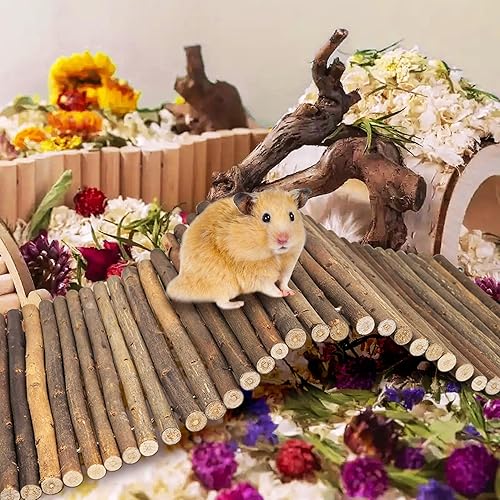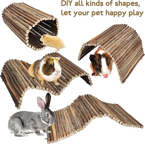 Versatile Use: This multifunctional hamster bridge serves as a house, tunnel, and chewing toy, Wooden fence, free to bend. When it's bent, it's big enough to live adult pets two, rabbits, chinchillas, squirrels, and other animal