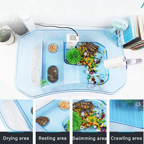 Multifunctional Area Design:Turtle tank is features has 5-zone,a breeding hibernation area, docking ramp area,a rest feeding area,a basking platform, and a diving swimming area to gives your pet a healthier, more spacious aquatic needs environment