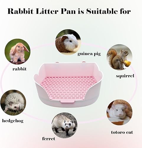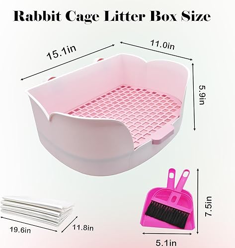Thoughtful Design:Rabbit litter box with grid mesh hole are right size,allowing feces to leak out instantly without sticking to feet,prevent feet from getting dirty.High fence of large rabbit litter box prevent urine from splashing out and keep cage clean