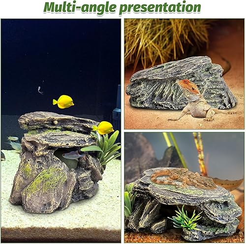 Realistic Rock Texture Shelter: This shelter enhances tank aesthetics with natural-looking details while offering a secure, humid hide. Its hollow structure encourages exploration and reduces stress for shy pets.