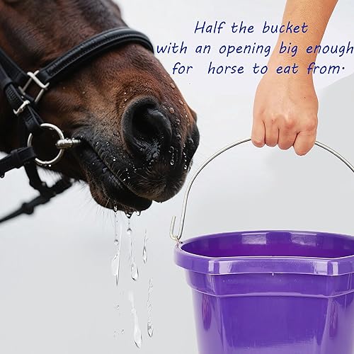 Half the bucket with an opening big enough for horse to eat from, flat back design saves space.