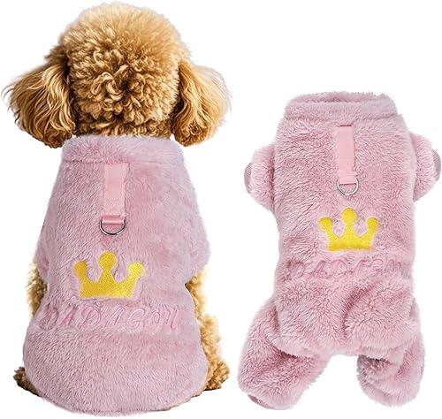 Crown Dog Pajamas Girl : Our small dog pajamas female are overall pink in colour with a cute crown pattern on the back, making your dog look more cute and charming. The D-ring on the dog winter onesie clothes can be attached with a leash, so that your dog can move around within your sight and be more safe