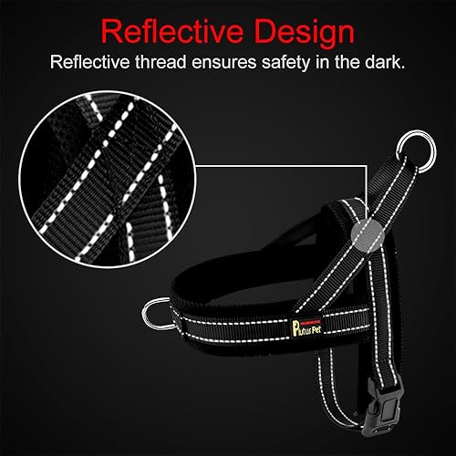 Easy on and off. Quick fit/Step-in design. The easy dog harness has only 1 buckle to control the adjustment, very easy to put on and take off. Please carefully measure your dog's size under our size chart.