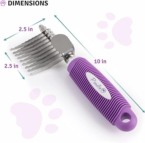 EASY GRIP HANDLE: With convenient hanging hole! Featuring a handle that has been crafted out of heavy duty rubber & textured with wavy ridges, the Poodle Pet grooming rake fits comfortably in hand to avoid slips that lead to accidents. Safe for use on wet or dry pet hair.