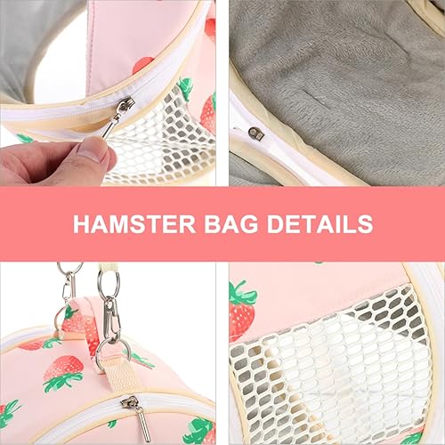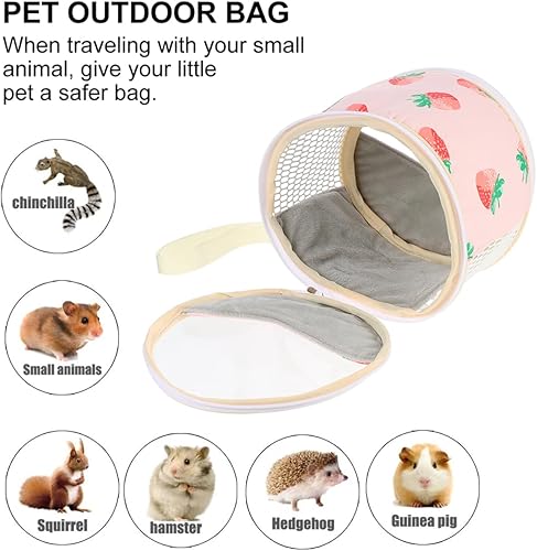 Stylish and Functional: Small Animal Carrier Bag with a Strawberry Pattern, designed for hamsters, guinea pigs, hedgehogs, squirrels, chinchillas, and rabbits, featuring a travel strap for easy carrying