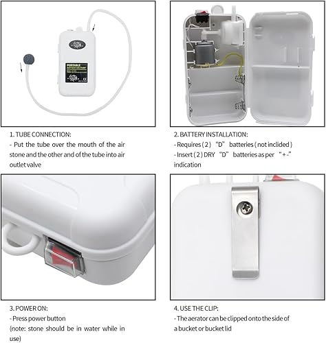 【Install battery】:Driven by 2 D batteries(not included), it keeps working continuously for about 100 hours. A reliable life saver for your fish during power outage.