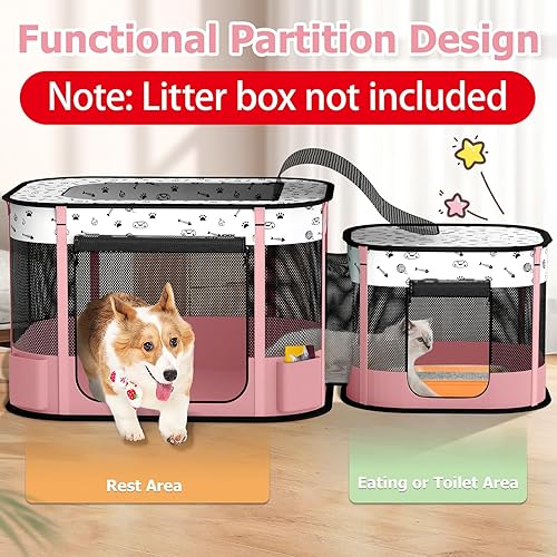 Separate Areas Design : The cat play pen has two separate functional areas for feeding, resting, playing and using the litter box. Create a tidy, cozy and quiet living space for your feline friend