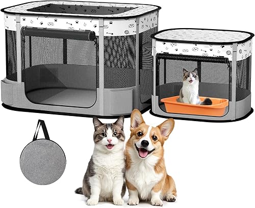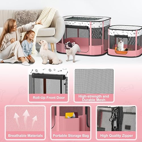 Portable & Lightweight : Pop up Dog Playpen for small dogs comes with convenient carry-case. Lightweight but sturdy, which makes this portable pet playpen for indoor, outdoor, traveling, camping, Pet maternity room