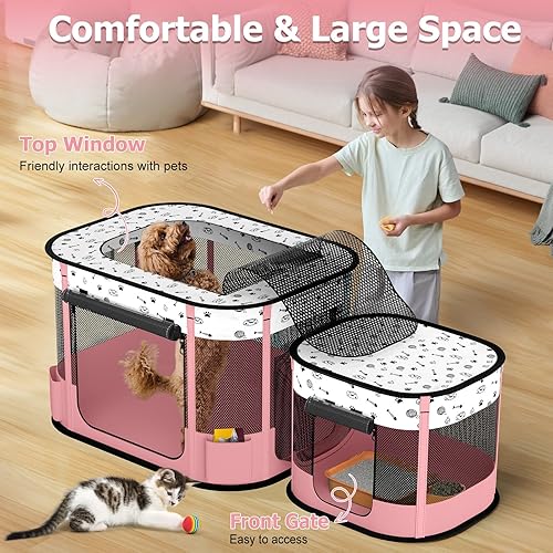 Easy Folding and Assembly : Kitten playpen come with step-by-step instructions and video tutorials that take only 3 minutes to install. Playpen for cats also folds flat when not in use for easy carrying and storing