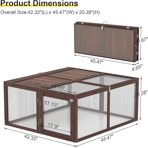 【Outdoor Chicken Run】Collapsible coop can be used as a rabbit hutch outdoors,45.47"Lx 42.32"Wx 20.28"H There is plenty of room for a feeder and waterer set to allow chicks to stretch their legs and stay active,which is good for their physical and mental health.