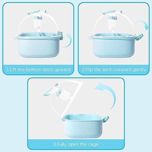 【Hassle-Free Cleaning in 20 Seconds】 Fully washable design – Simply snap open the cage, rinse under running water, and shake dry! No disassembly tools needed. Smooth acrylic walls prevent waste buildup, making it the most hygienic hamster travel carrier