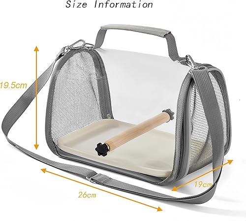 Package Contents: Each package includes one bird carrier, one tray, and one wooden standing perch. The built-in side zippered opening allows for easy insertion and removal of the tray for convenient cleaning.
