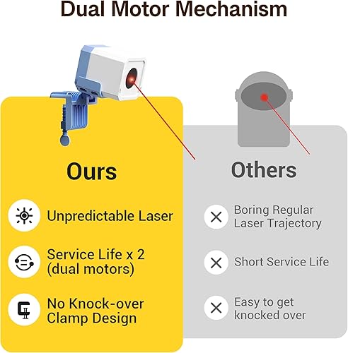 True Randomness: Experience the game-changer in cat toys with truly random laser movements. No more predictable patterns; watch your cat or kitten get fully engaged in the hunt, thanks to the cutting-edge dual motor mechanism.