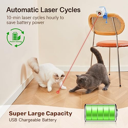Rechargeable & Power-Saving: Boasting a super large capacity, USB rechargeable battery, this toy ensures longer playtime per charge. Plus, its automatic 10-min laser cycles hourly conserve power for extended fun.