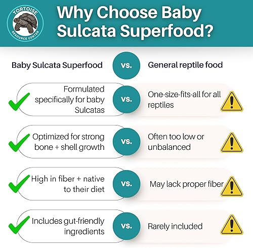 IS YOUR TORTOISE GETTING ENOUGH FIBER? Grassland tortoises like sulcatas need high fiber to thrive - and too much protein can hurt them. Our products are designed specifically for sulcatas with high Fiber, Low Protein Formula – Ideal for herbivores like sulcatas, which need high fiber diets, promoting digestion and overall shell growth and health.