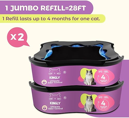 Optimal Compatibility: Specifically designed to fit for Litter Genie systems, including Standard, Plus, Style, XL Plus models. Each 28 FT long refill can last up to 8 months for a single-cat household, offering extended convenience and value.
