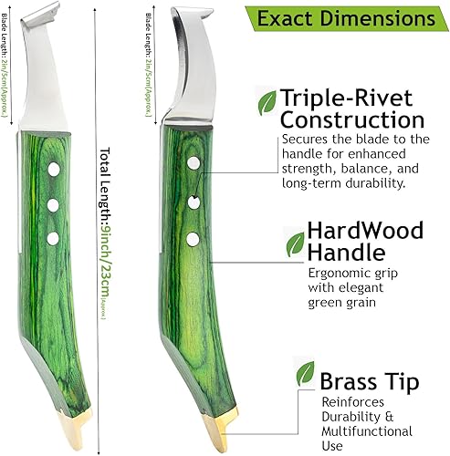Premium Build Quality: Crafted with a razor-sharp stainless steel blade, ergonomic wooden handle, and reinforced brass end—these knives are designed for long-lasting performance and trusted by farriers and farmers alike.