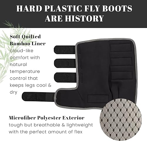 Finally, Truly Comfy Fly Boots: We put comfort first, with premium materials that make sense for horses; These leg wraps for horses are made of Soft Microfiber Polyester and Breathable Quilted Bamboo, not stiff plastic that restricts and irritates