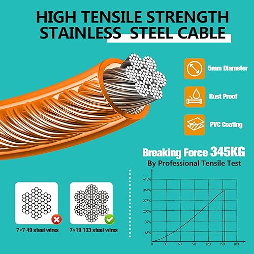 【Upgraded Excellent Quality】The heavy duty outdoor overhead trolley system is made of 5mm diameter stainless steel wire that resists chewing and rusting, providing extra strength and durability for large dogs weighing up to 250 pounds. The screw hooks are 15% larger and thicker to ensure secure screwing to a tree or wall and prevent large dogs from pulling.