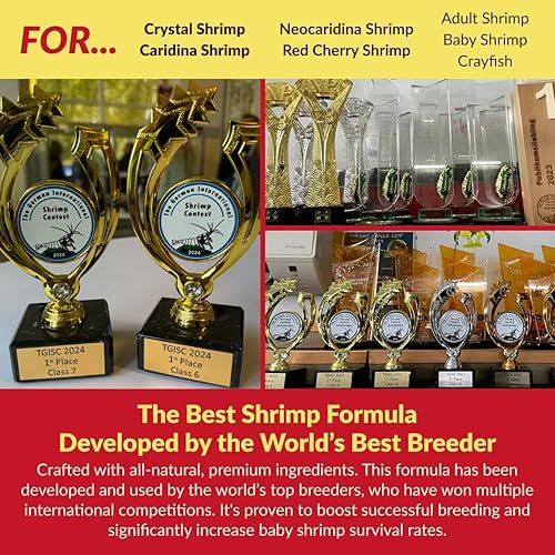 Elite breeder formula 2x breeding rates - Complete nutrition blend with squid, spirulina, and silkworm proteins promotes optimal growth from shrimplet survival to adult. Developed by international award winning caridina and neocaridina shrimp breeders.