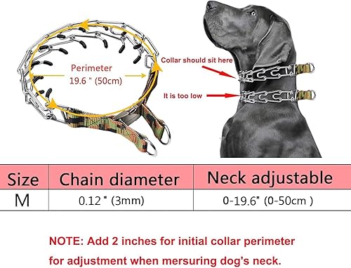★Adjustable Size➠ The perimeter of the dog training collar for large dogs can be adjusted to 23.6 inches, these no pull dog collars are suitable for medium large dogs. You can add or remove links on the dog choker collar to fit your dog's neck as need