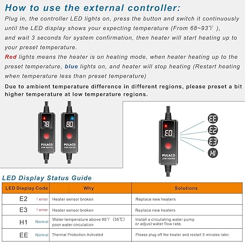 Easy to operate: This heater is different from regular heaters It is designed with an external controller for temperature display and temperature adjustment, which can freely adjust the temperature you need (68 °F-93°F).