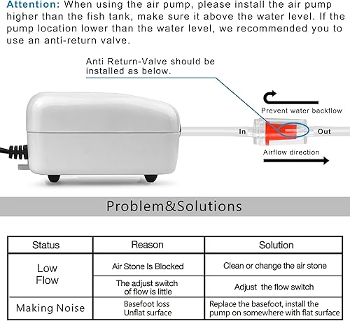 【Easy to Install 】Connect air pump with air tubing, check valve and air stone, less than few minutes installation.