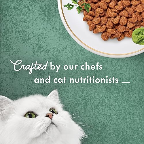 Hard cat food kibble Made with real white meat chicken with accents of tomatoes, carrot and spinach