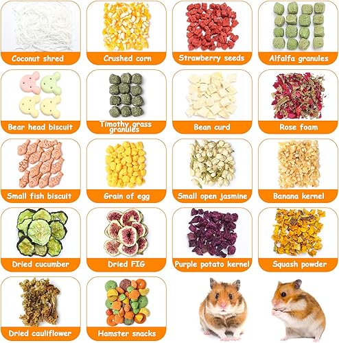 Widely used: Rabbits are herbivores, hamsters are omnivores, this product is completely suitable for rodents omnivorous small pets, chinchillas and other pets can not eat too much food with sugar, please understand your pet's diet before buying.