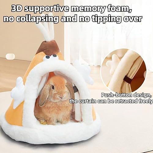 Cute rabbit tent: The cute tent shape and interesting decoration on the top make our rabbit bed more adorable, allowing your pet to enjoy more sleep. The cute rabbit cave bed is perfect for your adorable pet and is perfect as a gift for your pet at Christmas or other holidays.