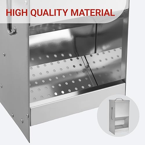 GALVANIZED MATERIAL: The rabbit food dispenser is made of galvanized material. Premium quality galvanized metal rabbit feeder is made to last, which makes the feeder more weatherproof, can be used indoors or outdoors. Gravity automatic feeder, won't get stuck with food.