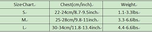 Size Chart: Small - Chest 8.7-9.5inch, suitable for 1.1-3.3lbs. Medium - Chest 9.8-11inch, suitable for 3.3-6.6lbs. Large - Chest 11.8-13.4inch, suitable for 4.4-6.6lbs. Pls check the size before you buy it.