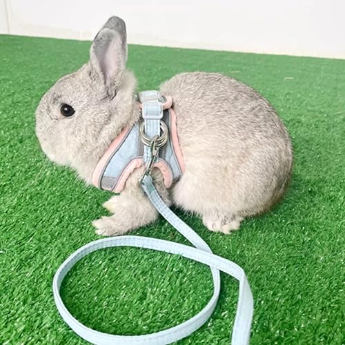 Soft Bunny Harness The rabbit harness and leash are made of suede, wear-resistant and durable, soft to the touch and lightweight. The rabbit is worn without any pressure and will not scratch the rabbit's skin even after long time wearing.