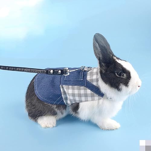 Material: Rabbit clothes are made of high-quality cotton and denim fabrics, fine and neat, comfortable and breathable. Rabbit rope made of leather material, wear and durable, can be used for a long time.