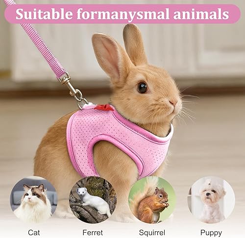 【Easy to Use】: Featuring adjustable buckles , the bunny harness and leash is easy to put on and take off, rabbit harness providing a hassle-free experience for both you and your pet.