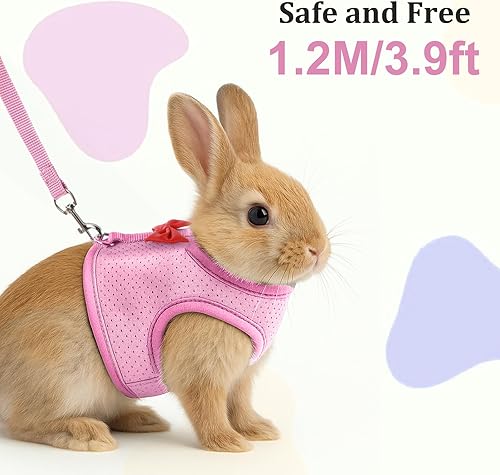 【Quality Material】: Rabbit harness and leash set is made from high-quality polyester mesh, the bunny leash and harness set offers a soft, breathable, and comfortable experience for your pet, even during extended wear.