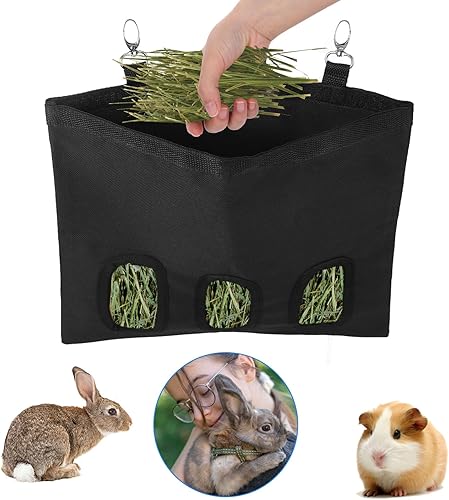 Collapsible and Easy to Use: Our rabbit hay bag is foldable and soft, lightweight, easy to be carried and stored, save your guinea pigs space. No tool required, any the hay feeder features convenient snap closures, just simply pull 2 hay bag for guinea pigs' metal hooks through the cage and snap on, keep it secure to the cage, fit for hung on most wire cage or a rope. Guinea pig hay bag's large capacity means that you only need to grass in bunny hay bag once a day and your pets will be full.