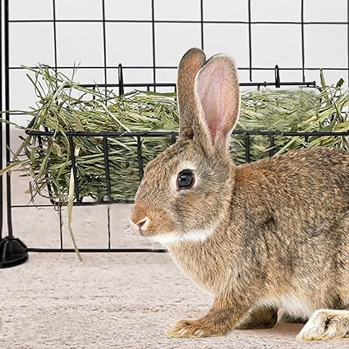【Quality Materials】Rabbit hay rack is made of high-quality metal material, well made and durable. The edges of the hay rack are rounded and smooth, with no sharp corners to harm your pet. Make sure your pet has a durable, safe, and long-lasting feeder.