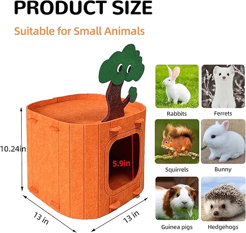 【Felt Material】:The rabbit bed is made of high quality felt fabric, providing a sturdy and comfortable space for resting and playing. The material is soundproof, scratch-resistant,pressure-resistant and not easy to deform, giving your pet a safe home. Removable for easier cleaning inside and out. Simply vacuum, rinse, or quick clean or hand wash with warm water and detergent to ensure cleanliness and hygiene.