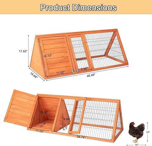 Easy Assembly & Cleaning Includes a removable tray for hassle-free waste cleanup and a chicken coop door with dual access points. The lightweight yet stable triangular structure assembles quickly—no tools needed. Use as a chicken tunnel for free-range grazing or a standalone chicken coop with run.