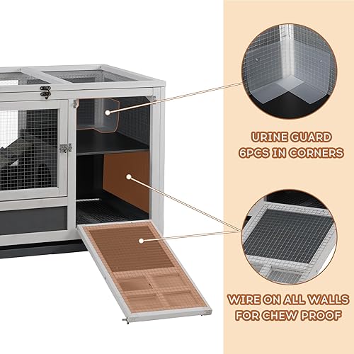 【URINE GUARDS】This indoor rabbit hutch has 6pcs urine guard at corners to keep urine and poop pellets from leaking down the corner leg onto floor