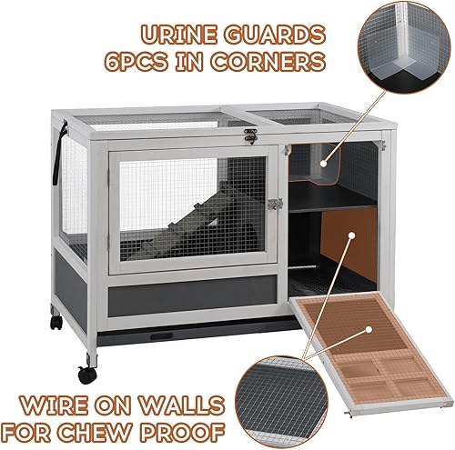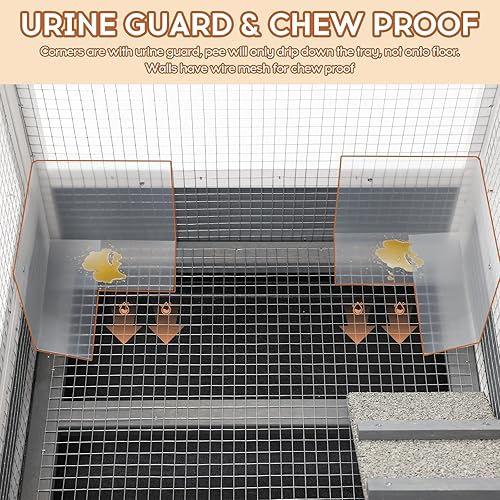 【Easy to Clean】It provides netting floor above removable plastic tray, this way the poops and urines of bunny will drop down for easy cleaning.